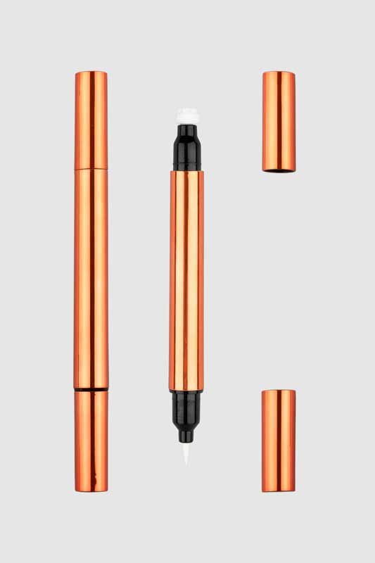 Eyeliner cecair dengan pembungkusan setem menggunakan bahan PP berprestasi tinggi dan mesra alam dengan saiz garis besar 124*10.4. Produk ini adalah reka bentuk dua kepala, satu hujung adalah pen cecair yang berkualiti tinggi, dan hujung yang lain adalah reka bentuk setem. Bahagian setem cetakan dapat membantu anda dengan mudah menarik solek mata kreatif yang sempurna, dan dengan mudah mencapai pembungkusan pen cecair cecair simetri.